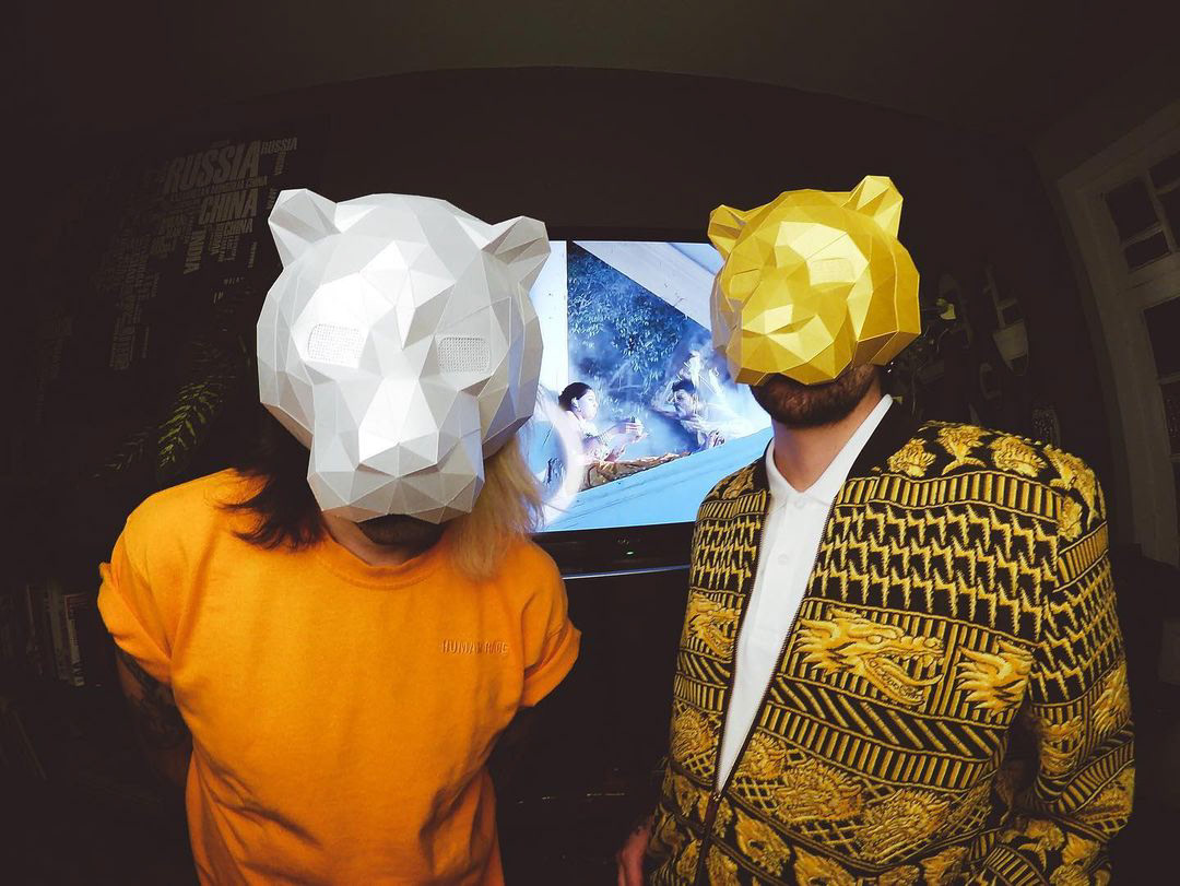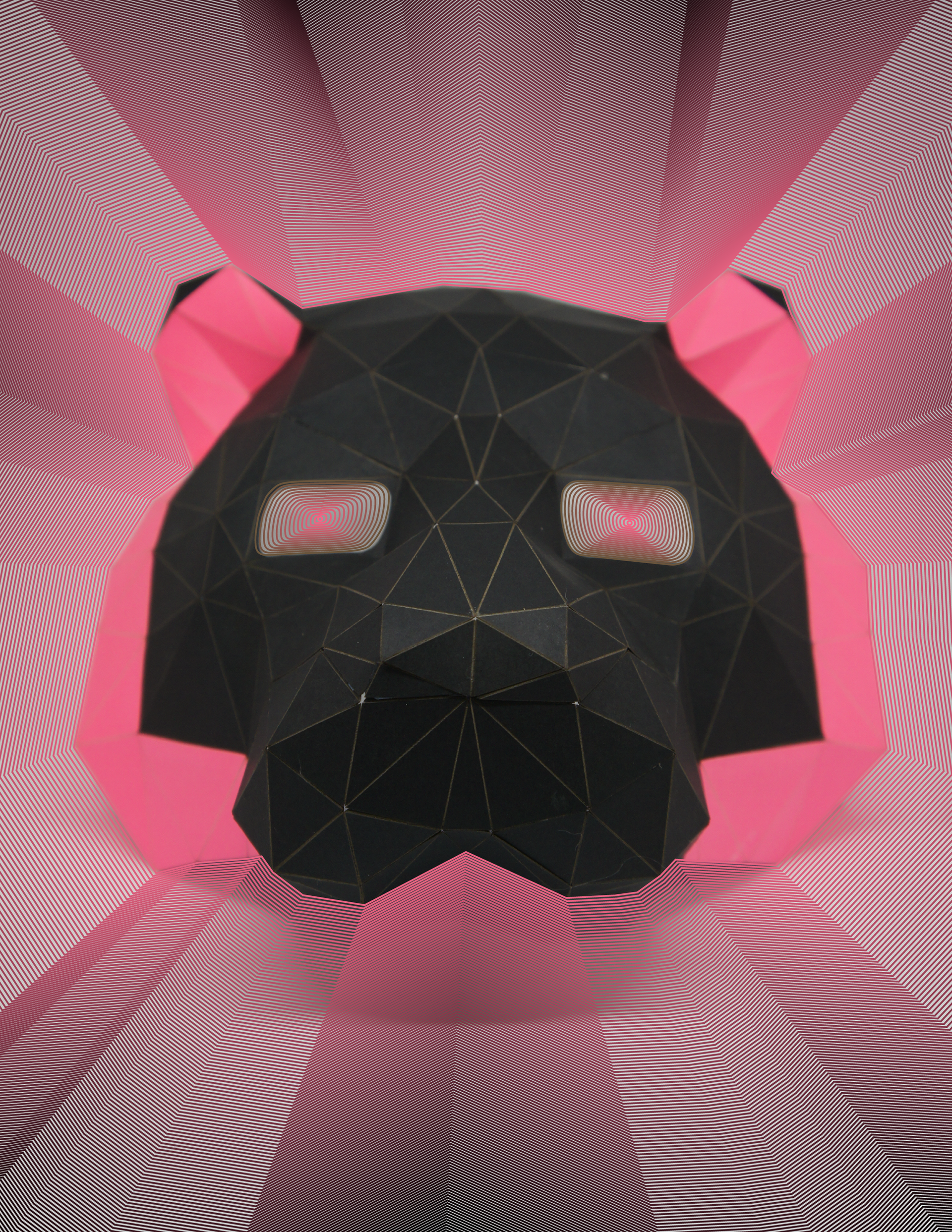 Handcrafted tiger halfmask with neon parts for glowing with black light.