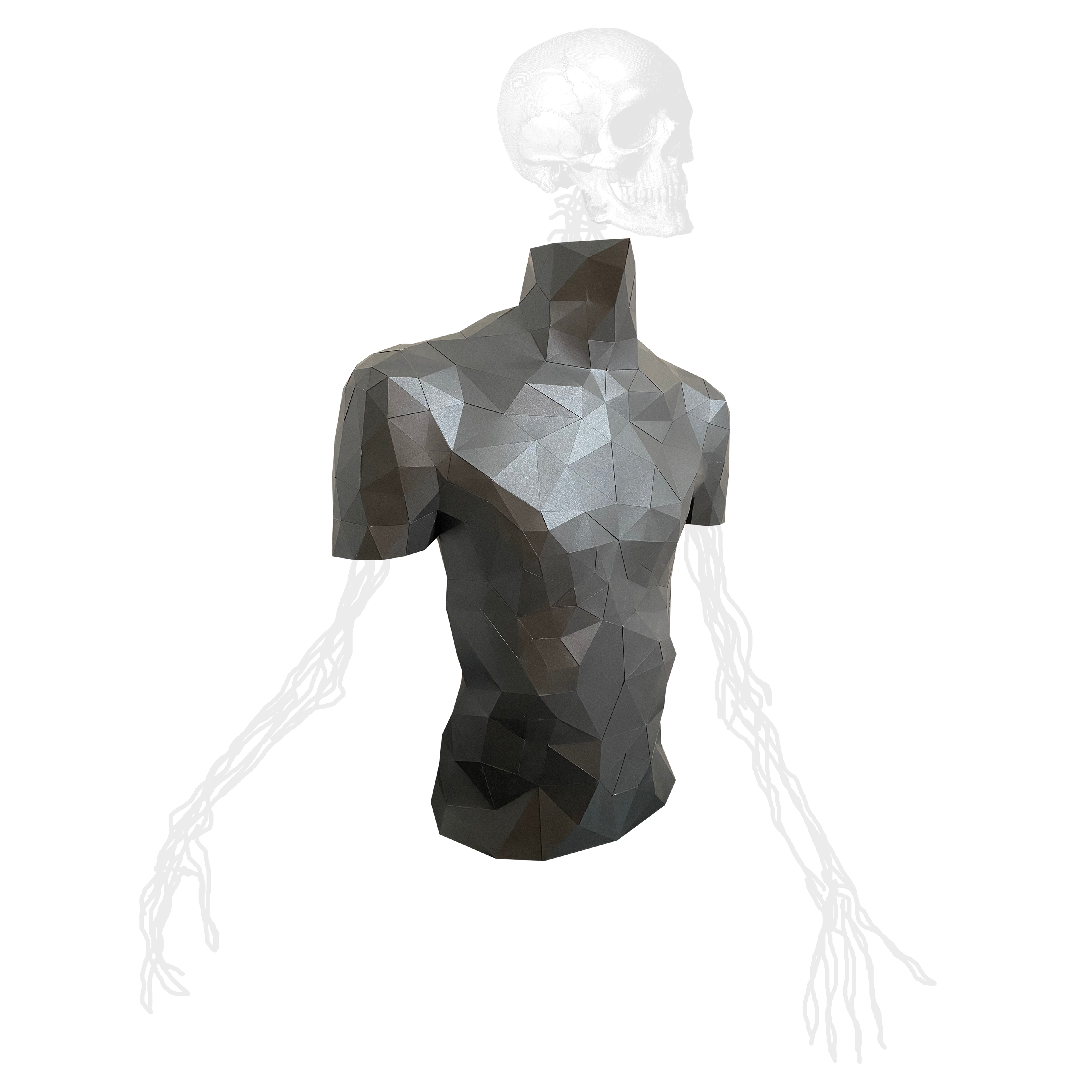 Paper mannequin torso. Made from a 3d scanning of a friend's body. scanned/optimized/solved